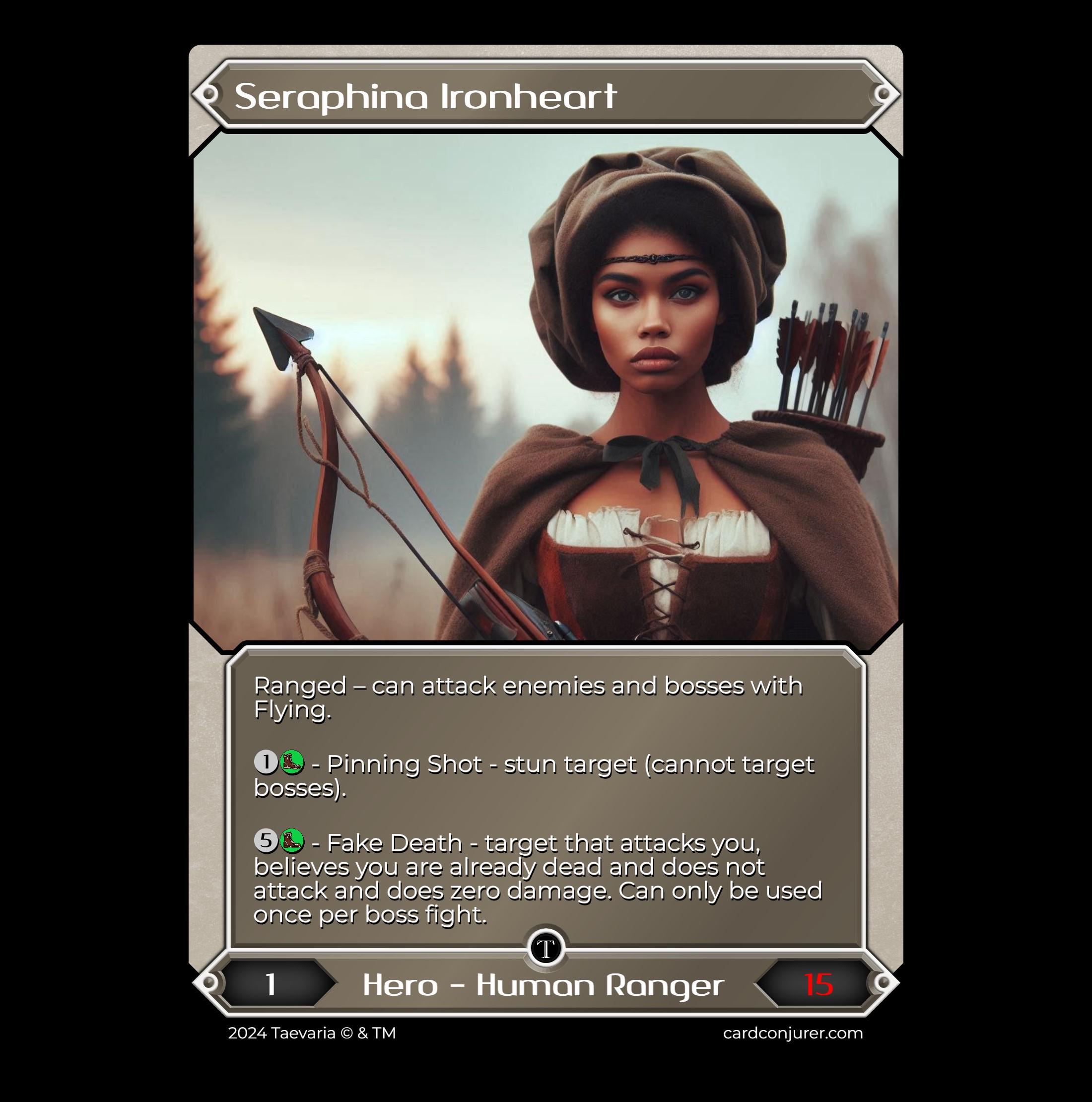 Seraphina Ironheart is an agility-based Hero who performs ranged attacks, allowing you to target bosses and minions with flying to defeat specific challenges. She also has area of effect abilities and can stun minions to help with crowd control.