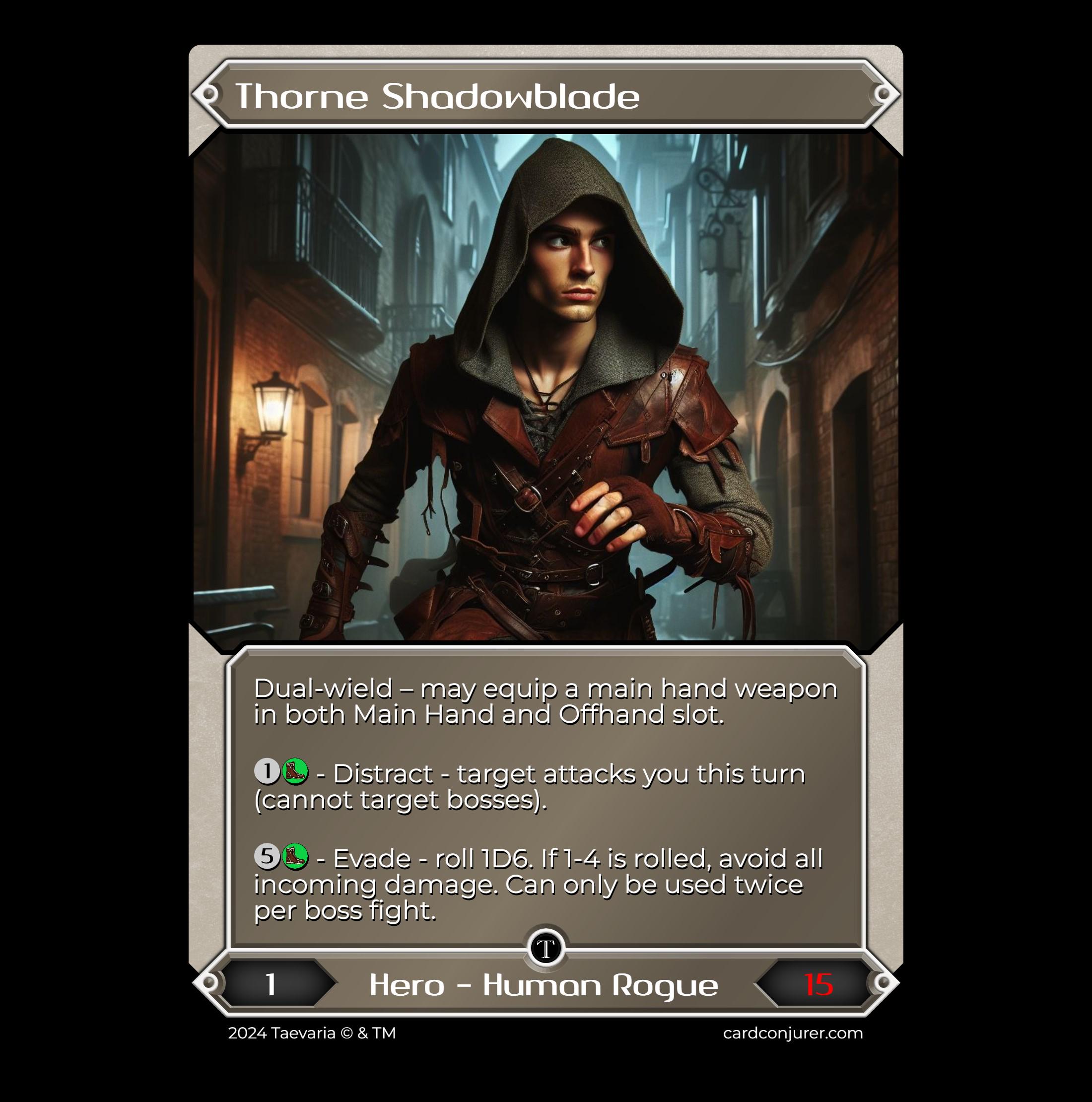 Thorne Shadowblade is an agility-based hero who can wield two weapons simultaneously. He primarily deals high damage and can interrupt spellcasting.